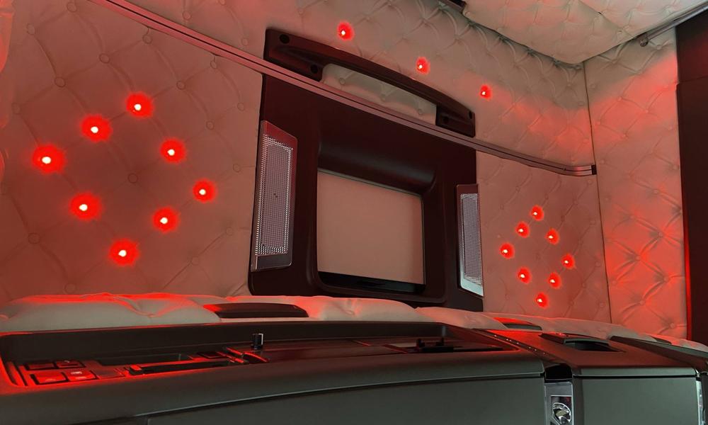 Bilen er opbygget hos filialen i Randers og Truckspot i Vallensbæk. In-Truck har stået for polstring.