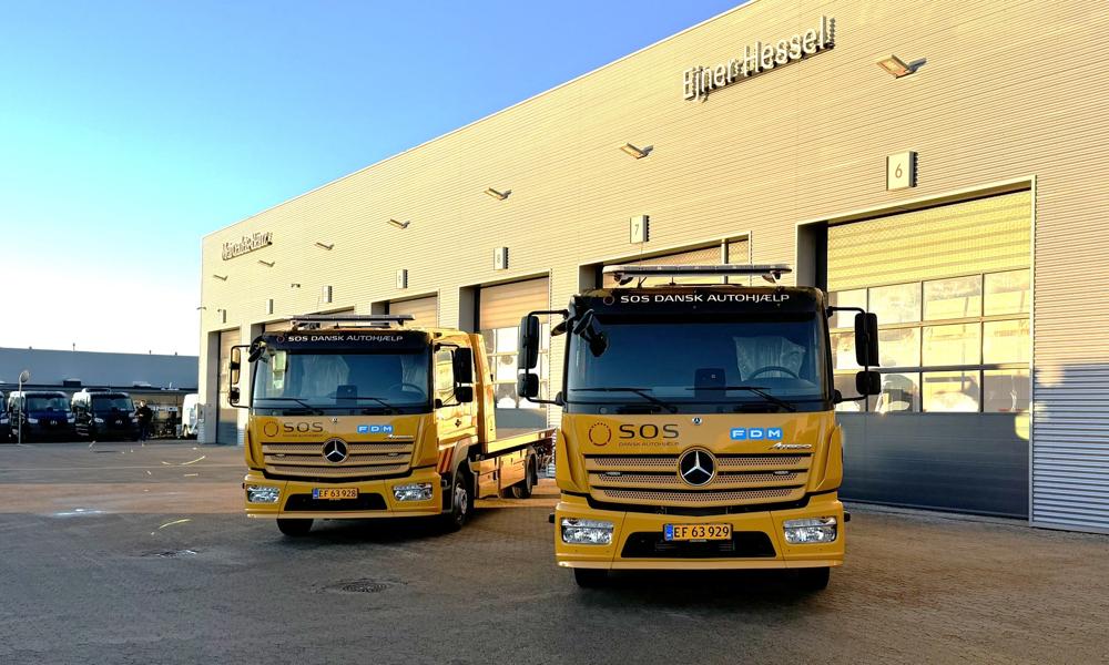 Fire nye autotransportere af mærket Mercedes Atego 1224 er leveret til SOS Dansk Autohjælp. Bilerne skal køre ud fra stationen hos SOS Dansk Autohjælp i Randers, som er en af i alt 35 travle stationer i Danmark.