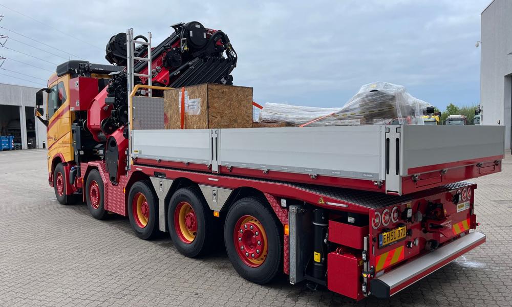 Opbygningen er udført hos Palfinger i Østrig og inkluderer en PK 1650 TEC H-kran med ni hydrauliske udskud samt en 24-tons fly-jib.