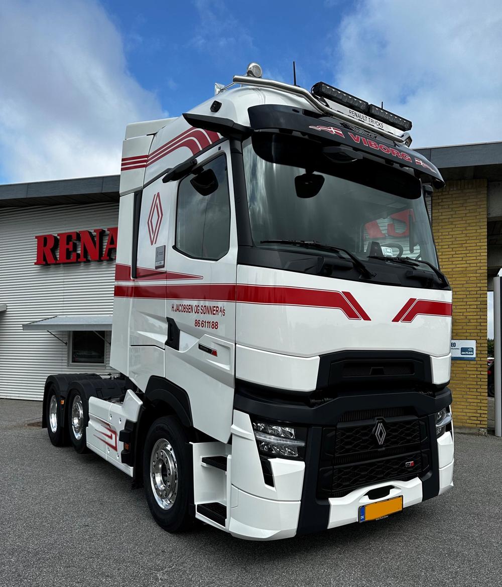Volvo Truck Center Viborg har stået for klargøringen og monteret både værktøjsskab på bagvæggen samt ekstra arbejdslys og fjernlys. Salg og levering af den flotte T-High er foretaget af Lars Herlund fra Renault Trucks/Volvo Truck Center Viborg.