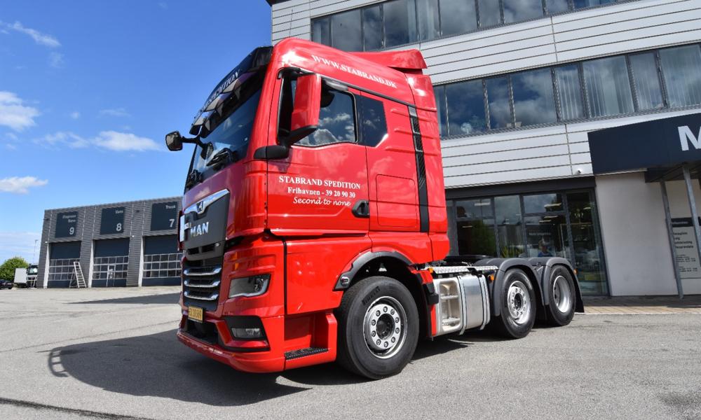 En ny lastbil er blevet sendt på vejene – denne gang hos Stabrand Spedition, som har fået den leveret i deres røde firmafarve.