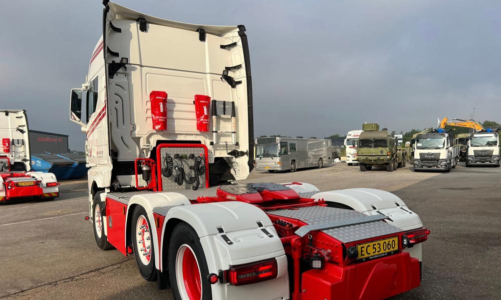 Her havde man nemlig fornøjelsen af at levere hele tre spritnye MAN TGX 26.520 6x2/2 pusher-trækkere, spækket med alt i udstyr, til Vendelbo Spedition i Hjørring.