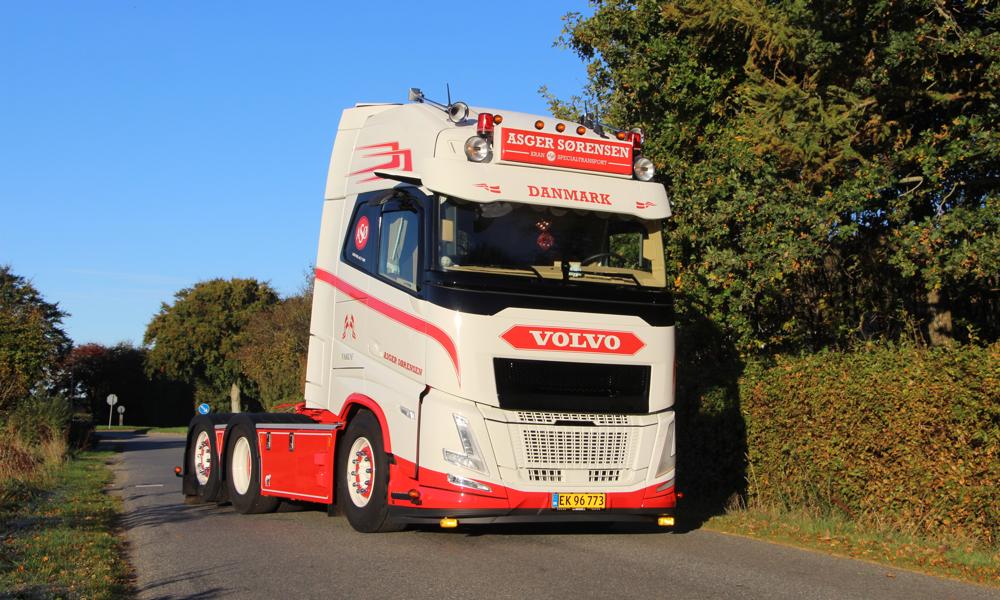 En funklende ny Volvo FH Aero-trækker står og glinser i oktobersolen, da vi møder bilen og dens chauffør på firmaets plads nord for Esbjerg. Bag rattet sidder Klaus Kristensen, 25 år og chauffør hos vognmand Asger Sørensen i Varde.